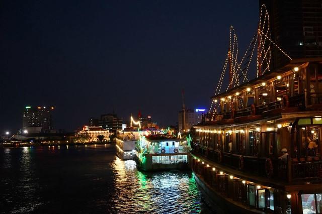 傍晚时分在西贡河码头登船,19:00左右游船驶离河岸后,会有衣着清凉的越南辣妹表演劲歌热舞甚至吞剑喷火等特技表演,游客可以边吃晚餐边看表演,或者前往夹板欣赏沿岸万籁俱寂灯火点点的河岸夜景。