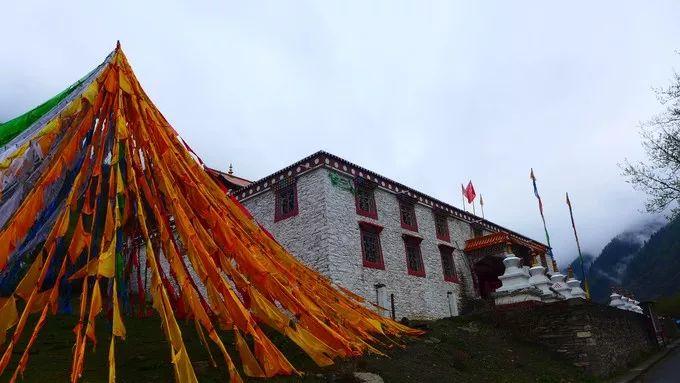 高原上的马,普遍矮小,而且藏民把马鞍垫上了厚厚的棉被,骑上去没有想象的痛苦。 一进沟,便是斯古拉寺,据说有1300年的历史了,摇曳的经幡在为我们祝福。云雾仍弥漫在山间,能否见到四姑娘呢?