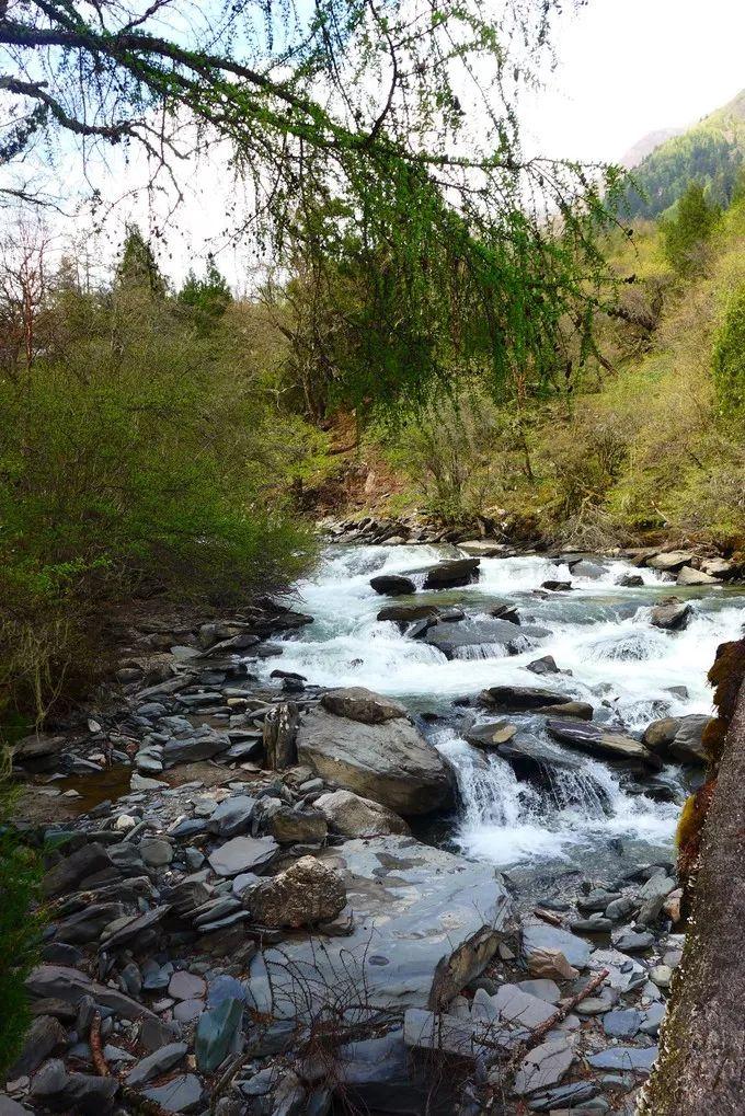 干海子不是湖,只是一片沼泽,白色的鹅卵石、绿植、苔醉也是一番别样景观 。红石阵,绝对是这里的撞色点缀,春天的长坪沟因为红石而艳丽。