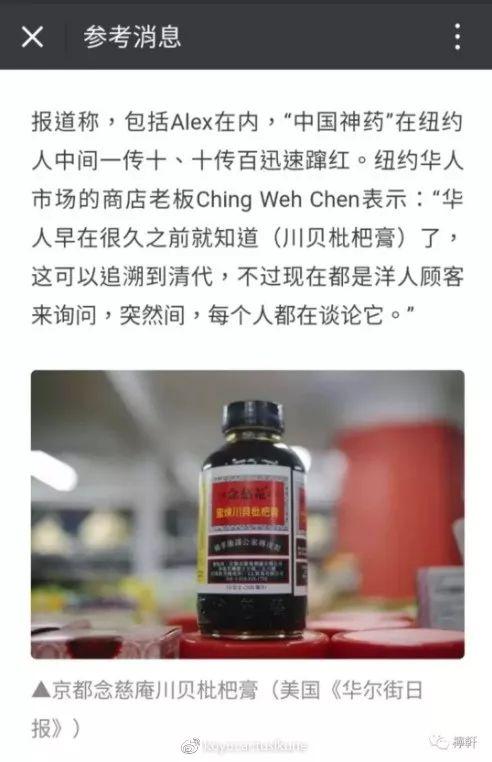 “《华尔街日报》宣传枇杷膏是中国神药”,不少人被这种宣传刷屏。