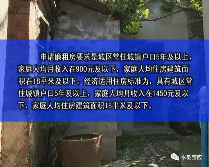 房管局相关科室负责人介绍,今年居民申请廉租房的,要求是城区常住城镇户口5年及以上,家庭人均月收入在900元及以下,家庭人均住房建筑面积在18平米及以下。经济适用住房标准为,具有城区常住城镇户口5年及以上,家庭人均月收入在1450元及以下,家庭人均住房建筑面积18平米及以下(配音加字幕)。