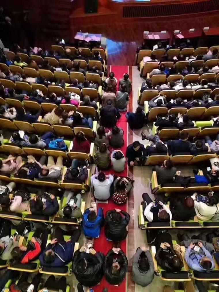 正式会议在当天08:00准时开始,8:05到达会场时在门口凭代表证被放行进入会场,已座无虚席,连同走廊都挤满了人,请人预先占的位子在大会主席周平红教授开场时一句“所有人不许占位子”下眼睁睁没有了。但是会议精彩,实在不容错过,于是勉强半蹲在走廊里看演示和讲课,腿酸脚麻之余,听闻中山医院内镜中心创始人姚礼庆主任也是坐在走廊上观看。