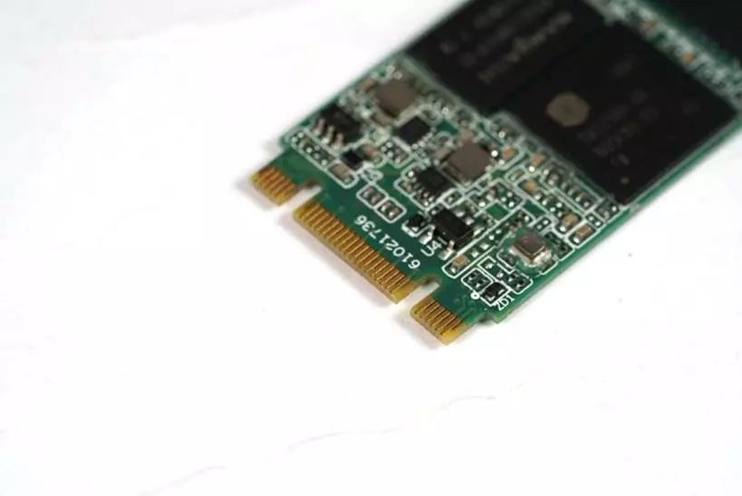 可以看到,它的右侧金手指只有4根,是符合M-key针脚定义的。所以这是一张支持M-key协议的固态硬盘。但受限本身产品定价以及规格速度限制,它的上限也依然只有X2,也就是10GB/s是这块SSD的上限。
