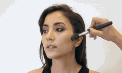 Step4:用海绵按压将高光阴影晕染自然,使妆容更服帖。