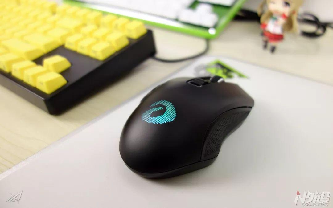 滚轮后方的DPI键是一体式前后推拨触发设计,有别于传统的“+”“_”双键的样式。可以看出达尔优是想在产品上做点与别人不一样的东西,虽然并非其首创,但起码求变的意图已经很明显了,虽然这次这个做得并不完美(部件固位不牢,鼠标晃动时有撞击杂音),但态度没毛病。另外,通过右键+滚轮的组合还可以实现切换鼠标的能效模式(即更改刷新频率),也是很方面、实在的一个功能。