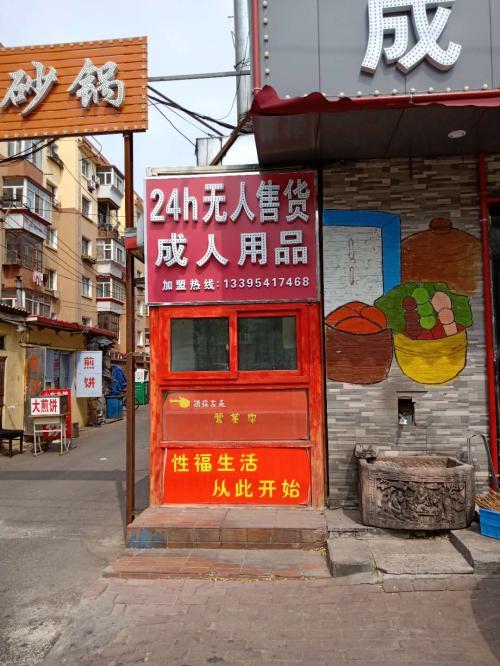 哈市第四十四中学后身,开着一家“美伦365”24小时无人售货*人用成品**店;