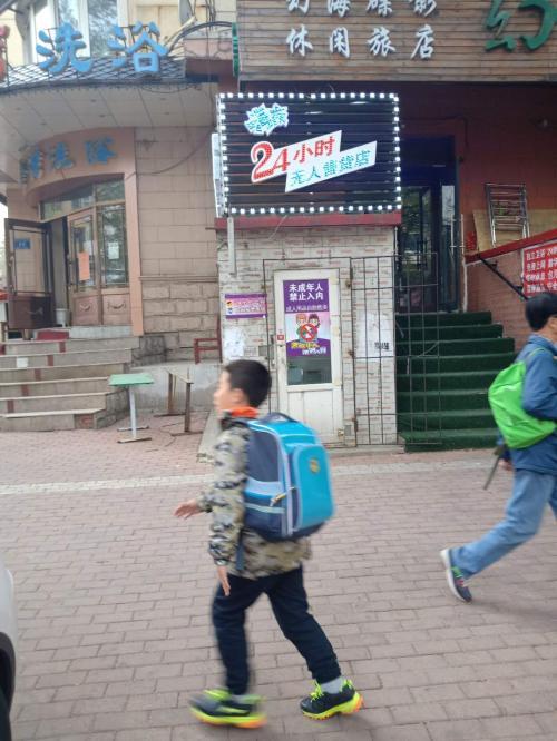 11日,根据其他家长的投诉,记者来到哈市第二十中学侧身街道,看到一家“他她情趣”24小时无人售货*人用成品**店正在营业,店内自动售货机上正在*放播**视频,视频中一名女子穿着暴露,搔首弄姿。店内外均未见“未成年人禁止入内”的标识,也没有悬挂相关证照。