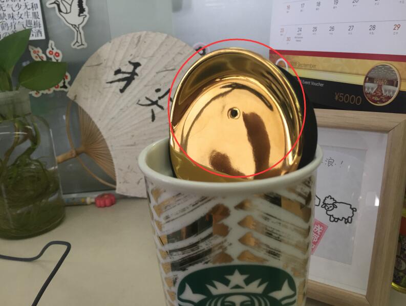 突然有一天,我发现我水杯的盖子,是金色亮面的,虽然拿来补粉是有些像素不足,但平时用来涂涂口红,照照黑眼圈、看看双眼皮有没有单,也是很好用的。