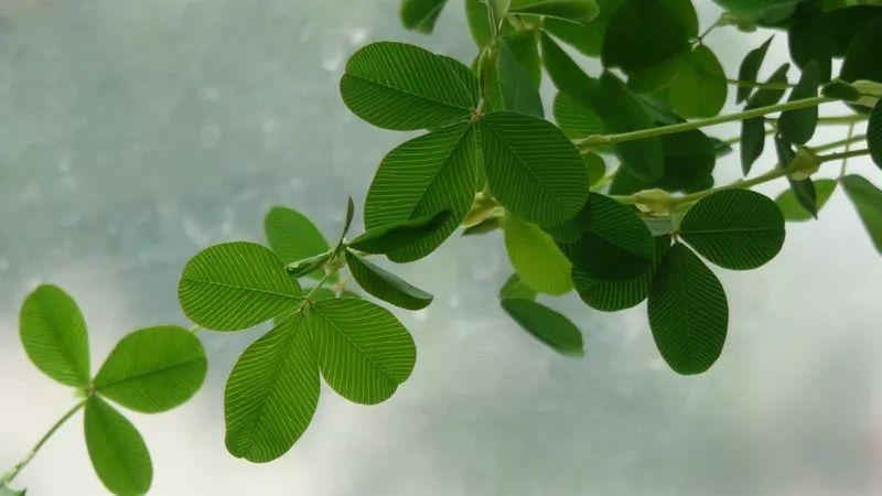 它的叶子就像三颗整齐地对在一起的碧玉心形,而且就很漂亮、完整的心形,它可比草头(苜蓿)、车轴草的心形完美多了。相形之下,草头、车轴草的叶子形状,与其说心形,不如说是蒲扇。