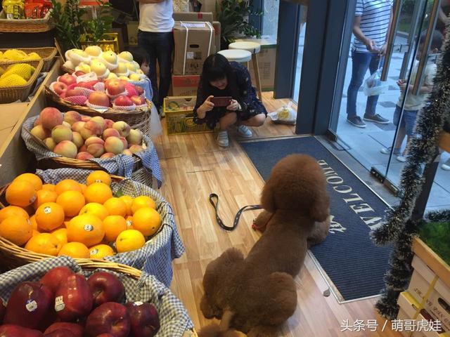 捡屎的带大泰迪虎娃去楼下巡视地盘,发现新开了一间好豪华的水果店。