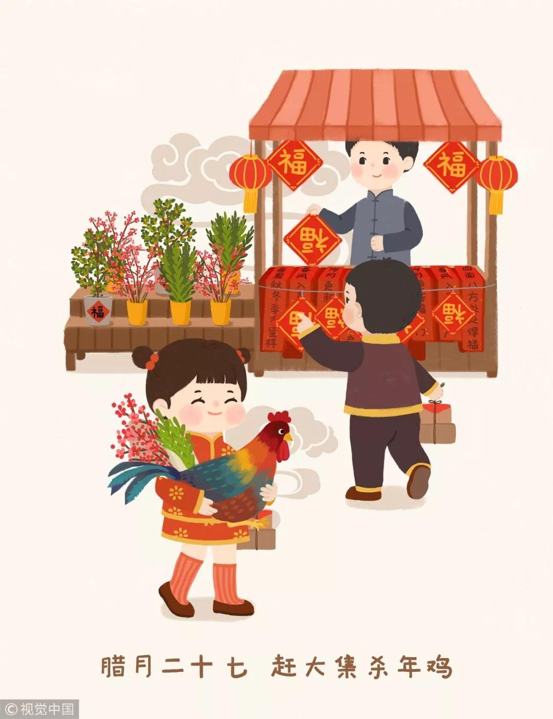 评析:腊月二十四扫尘日,拆洗被褥窗帘,洒扫六闾庭院,掸拂尘垢蛛网,疏浚明渠暗沟。这套年俗作品用笔轻松淡雅,古典风格,将春节习俗表达得通俗易懂,清晰到位,销售成绩不错噢。