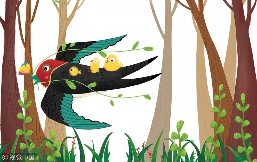 评析:春天的画面少不了小燕子与绦绦柳枝,插画师笔下的燕子也是可爱的燕子妈妈,驮着她孩子们一起迎接美丽的春天。此幅作品上个月份多次授权。