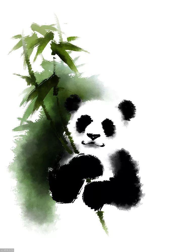 评析:萌萌哒的国宝来了,水墨晕染的效果让画面用笔简练又不失毛茸茸的质感。