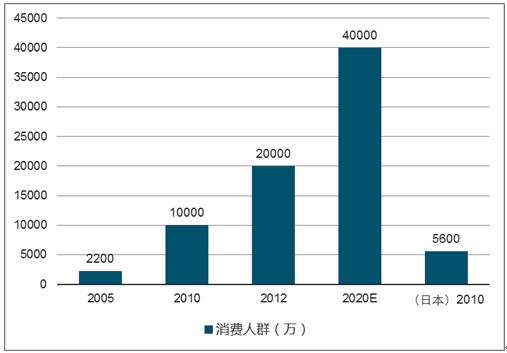 我国核心化妆品消费人群(万)
