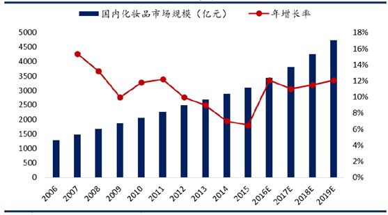 国内化妆品市场规模大,并持续攀升