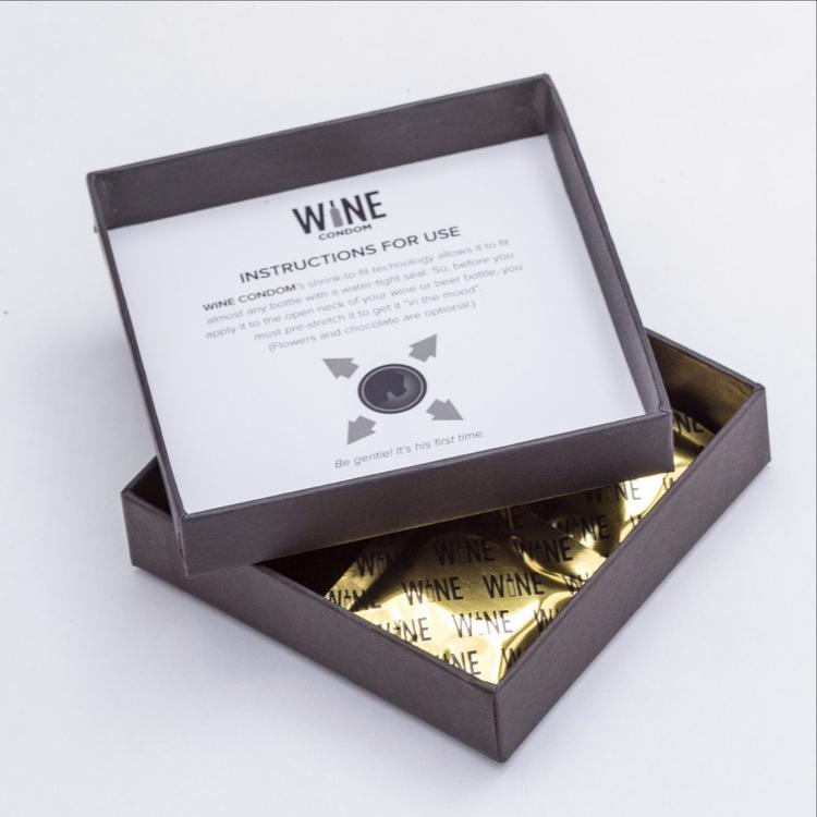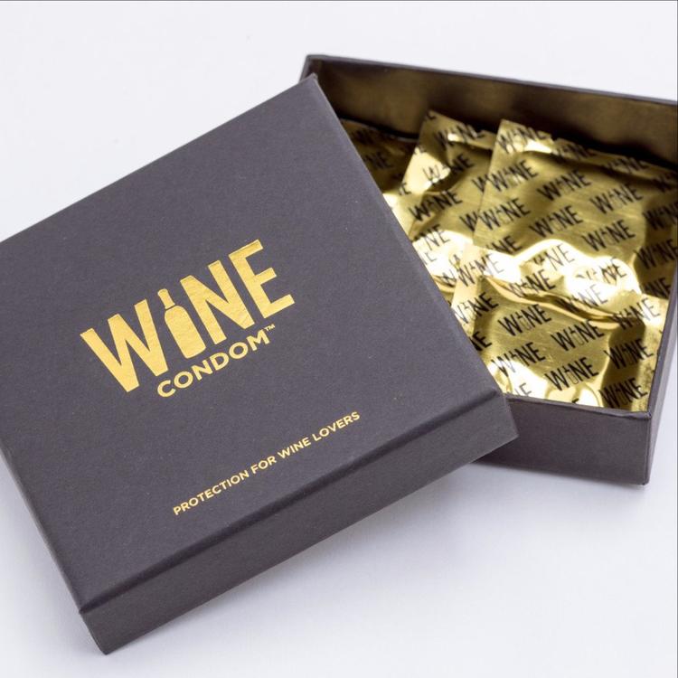 几年前的一个晚上,Laura Bartlett 把朋友集会后没喝完的红酒带回家,为了保存已开封的红酒,她在瓶口套上保鲜膜和橡皮筋,儿子 Strahan 看到后,开玩笑说,像是个“安全套”。正是这个玩笑,给了母子俩灵感,他们决定做一款红酒专用的“安全套”,开始设计产品、logo 以及包装。