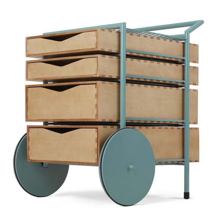 Swappi 不仅能够提供存储、收纳功能,可调节的抽屉也能变为展示型货架。手推车的形式更适合小型空间使用,轻松实现在房间里四处移动的需求。薄荷绿色的框架搭配四个木制格挡,更适合当代家居空间。早鸟价 279 英镑,。