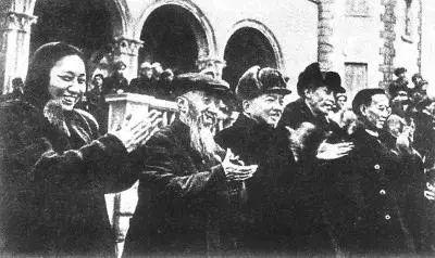 1949年1月,沈钧儒、李济深、郭沫若在沈阳观看秧歌表演