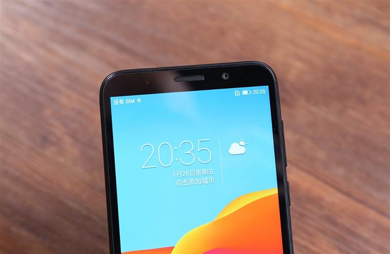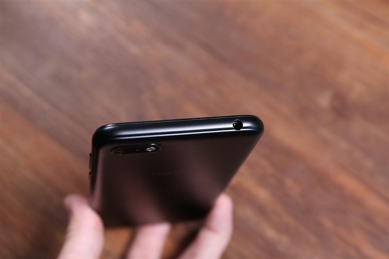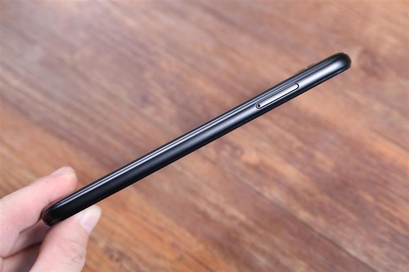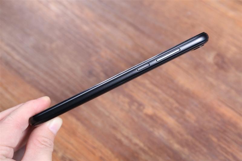 光荣畅玩7的正面,笔者手中的是黑色版本,前面板同样为全黑色,因为屏幕采用了18:9比例,机身竖长小巧非常圆润,有一种萌萌的感觉。