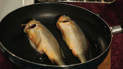 然后再在锅中倒入冷油,这时可以发现之前的热油在锅底形成了油层,这样就变成不粘锅了,煎鱼或者水煎包都不粘锅啦!