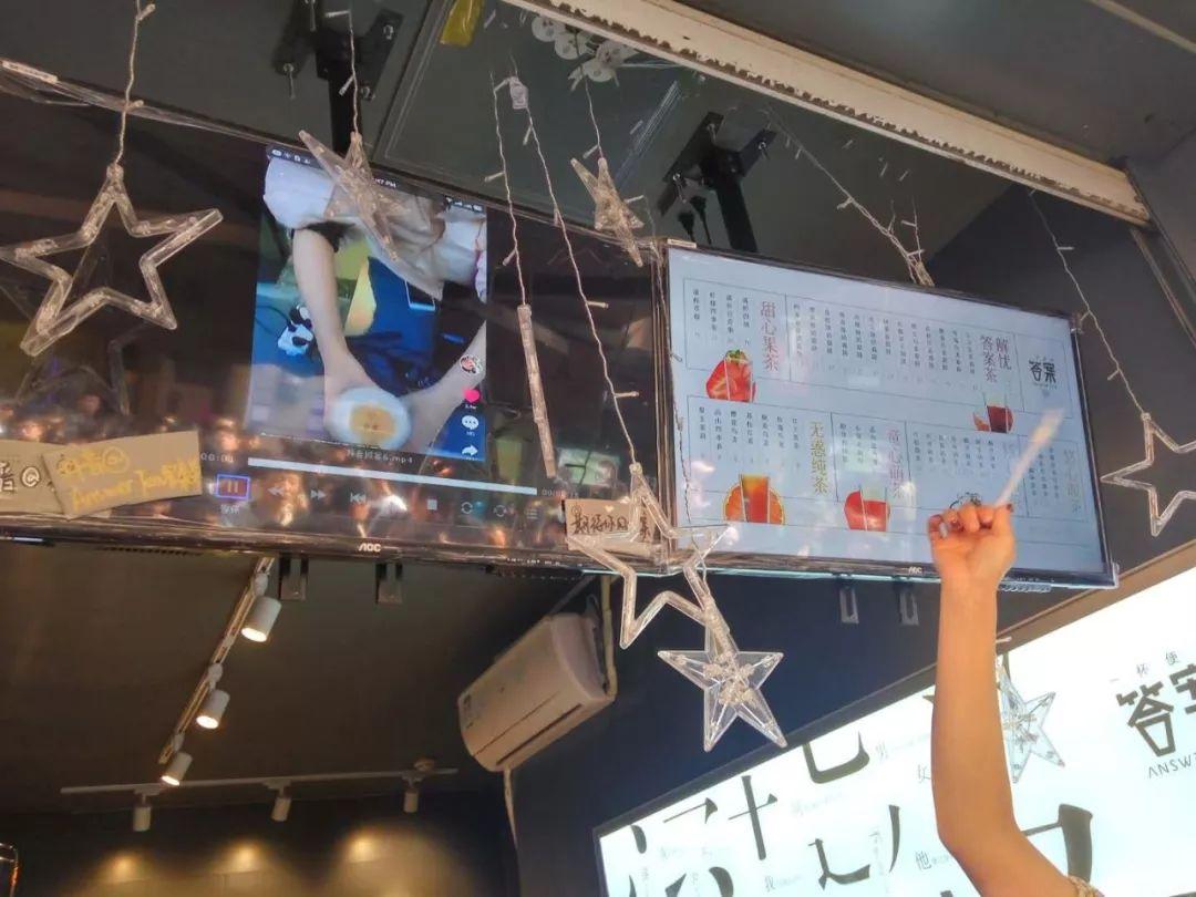 大屏幕一边*放播**的抖音视频,一边是菜单,工作人员在不断讲解