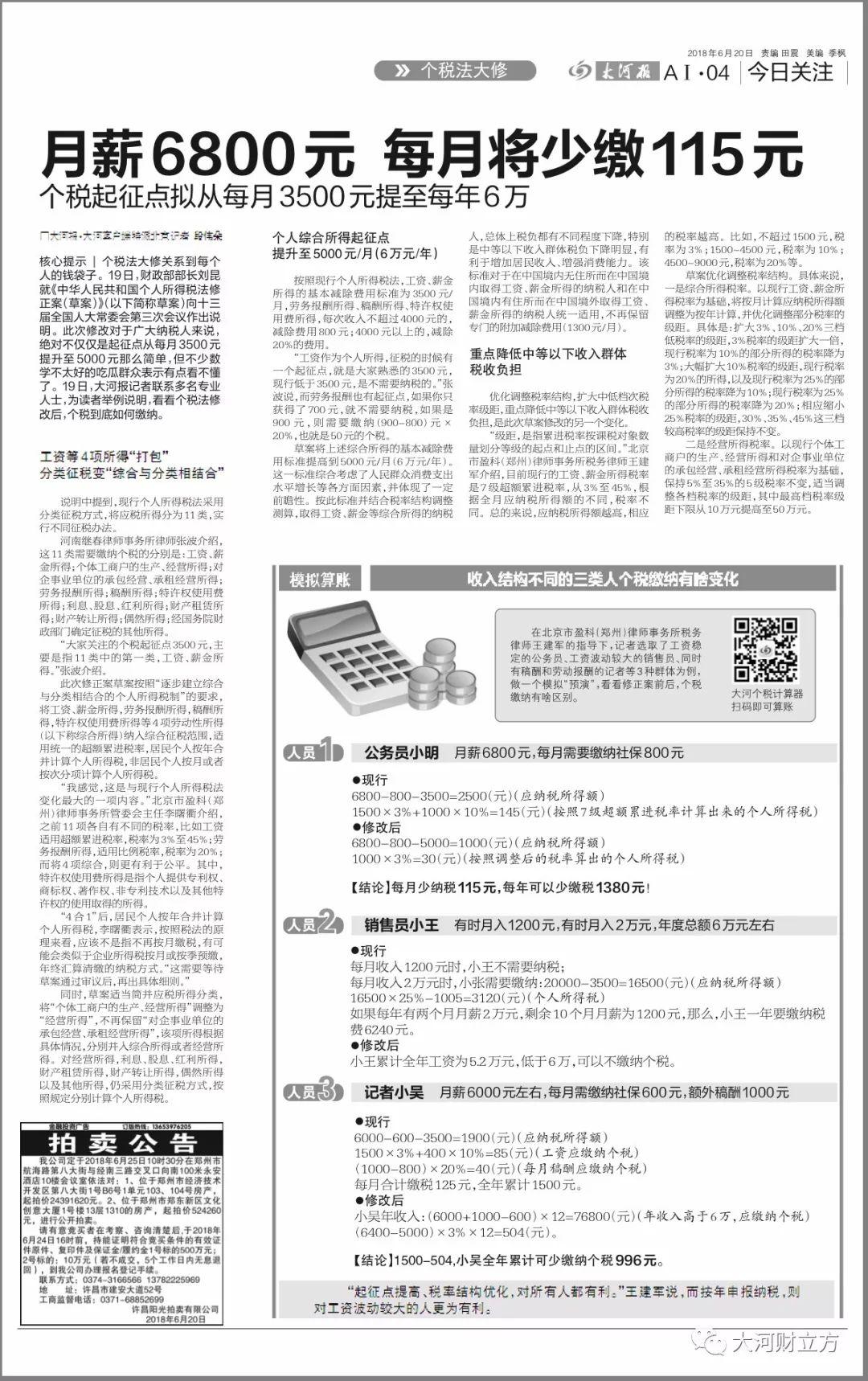 “大家关注的个税起征点3500元,主要是指11类中的第一类,工资、薪金所得。”张波介绍。