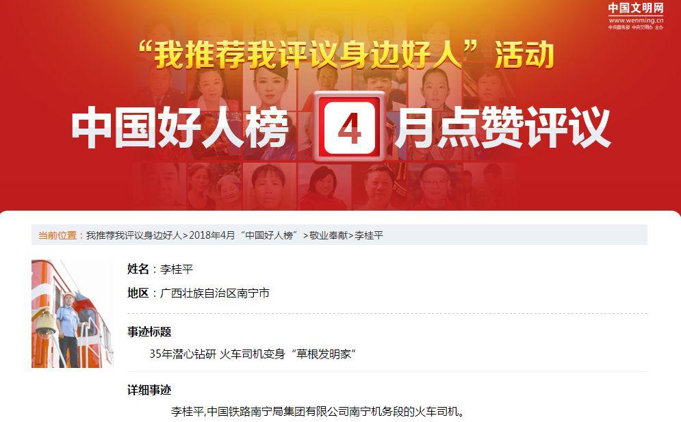 李桂平,中国铁路南宁局集团有限公司南宁机务段的火车司机。