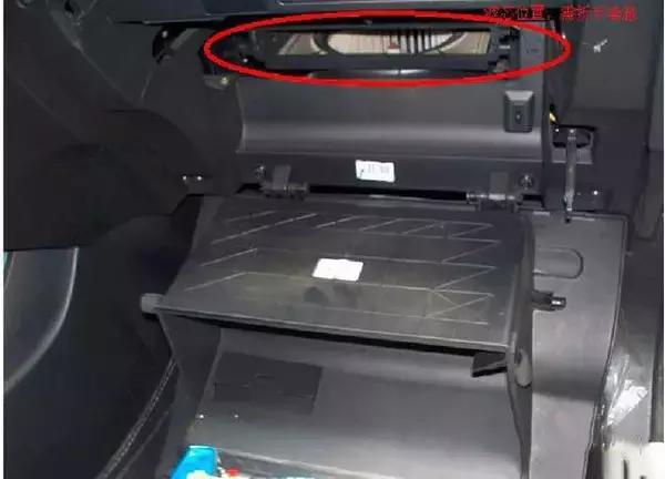 ▲凯迪拉克SRX空调滤清器拆装位置--手套箱后面
