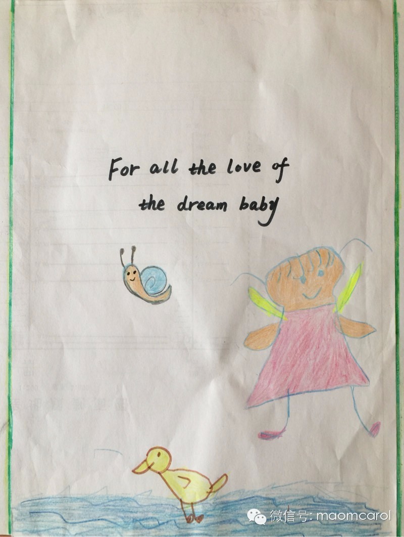 洋宝有很多奇奇怪怪的梦想,无论什么地方看到的觉得有趣的画面,都会画下来,零零碎碎的纸张家中到处都是,所以相信很多宝贝都是一样的,也都有着很多奇特的梦想要去实现,这里洋宝就借助一只snail去实现她的梦想吧!下面的蜗牛、长着一对天使小翅膀的小女孩就是洋宝添上去的,丑小鸭仍旧是延续。