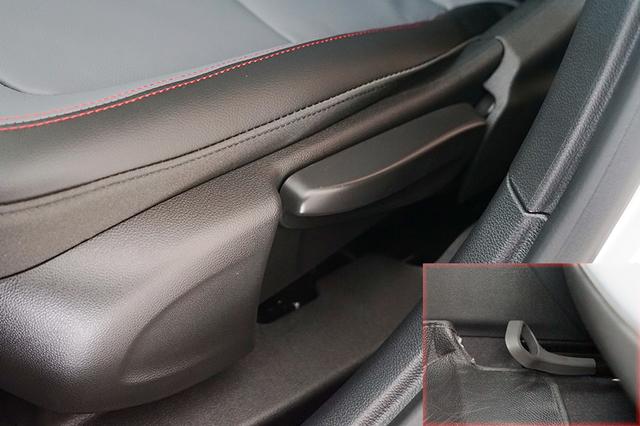 碍于成本,实拍车型的座椅只支持手动调节,但前后调节把手的操作手感还是不错的。
