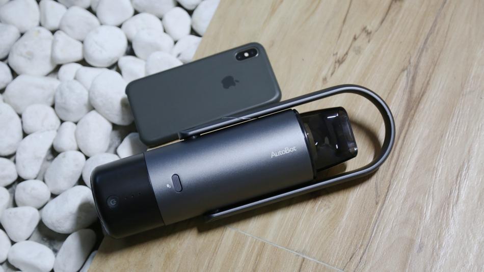 AutoBot便携式车载吸尘器整体的风格与他家的其它产品采用了相同的设计语言,所以它在车里防止的时候也不会出比较突兀的情况。最重要的是我们看到它相对iPhone X并没有大很多,这一点很重要,毕竟车内空间是有限的,机身小巧这一点非常非常重要。