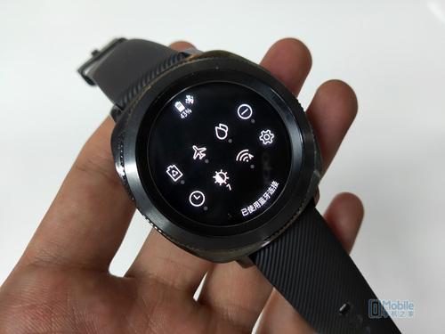 三星智能手表的操作逻辑触摸和转动,无论是查看通知还是选择应用,都可以通过转动表环实现。右侧两个实体按键为返回键(上)和电源键(下),中间为麦克风。