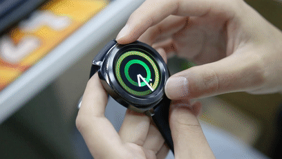Gear Sport上有一些很实用的手势操作功能,包括按两下主屏幕键启动语音、手势唤醒、表圈唤醒、增加触摸灵敏度从而可以在戴手套时操作使用。
