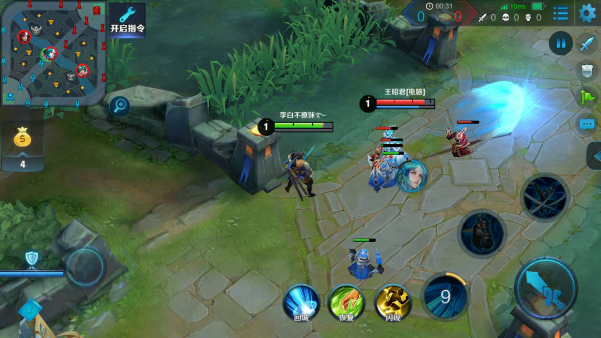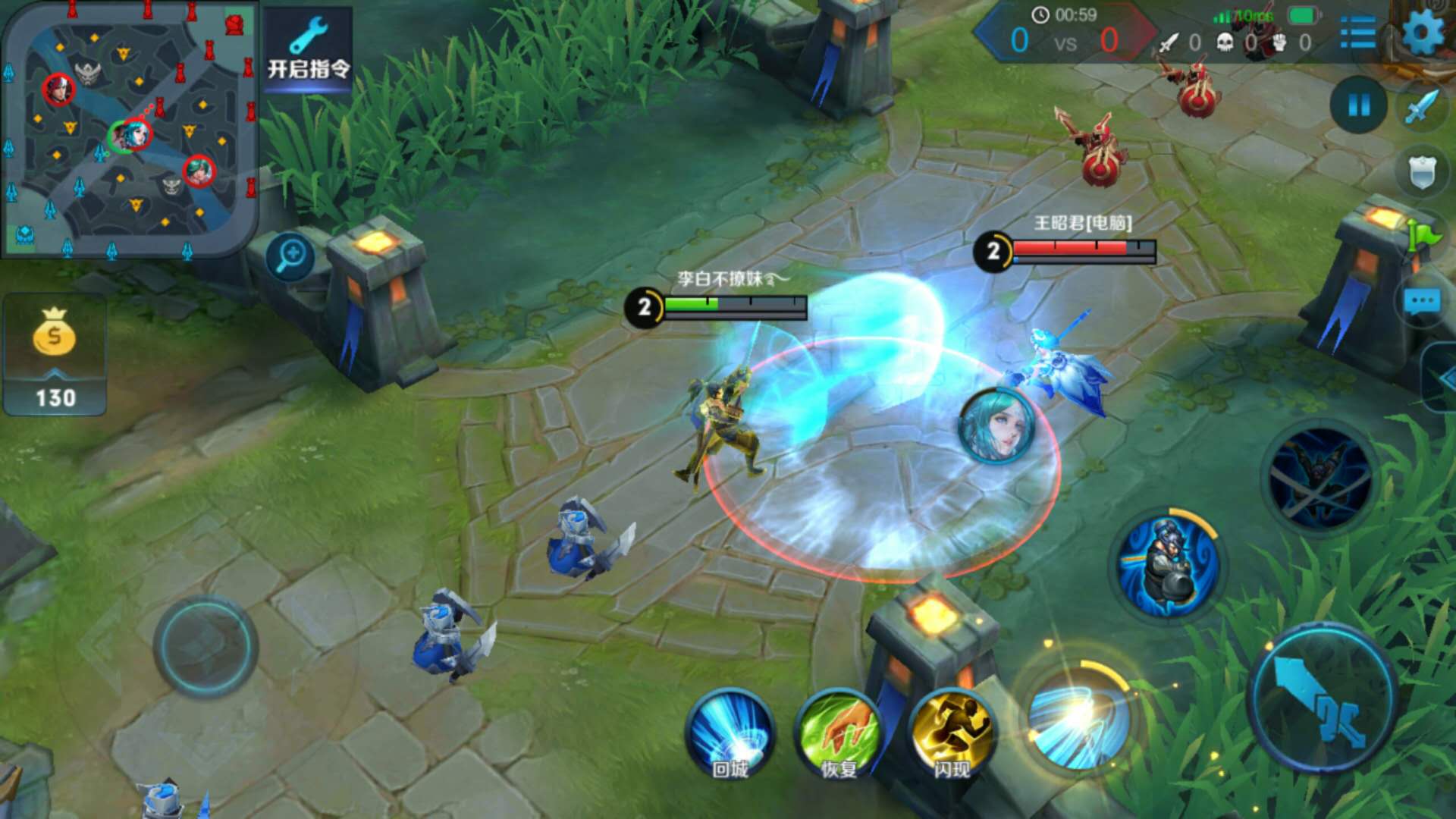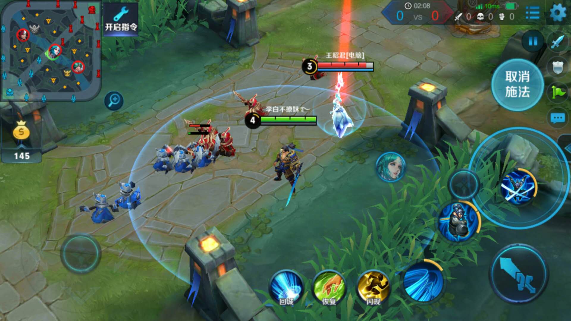 ②1技能伤害很高,尽量命中一条直线上的所有小兵,可大大提高清兵效率