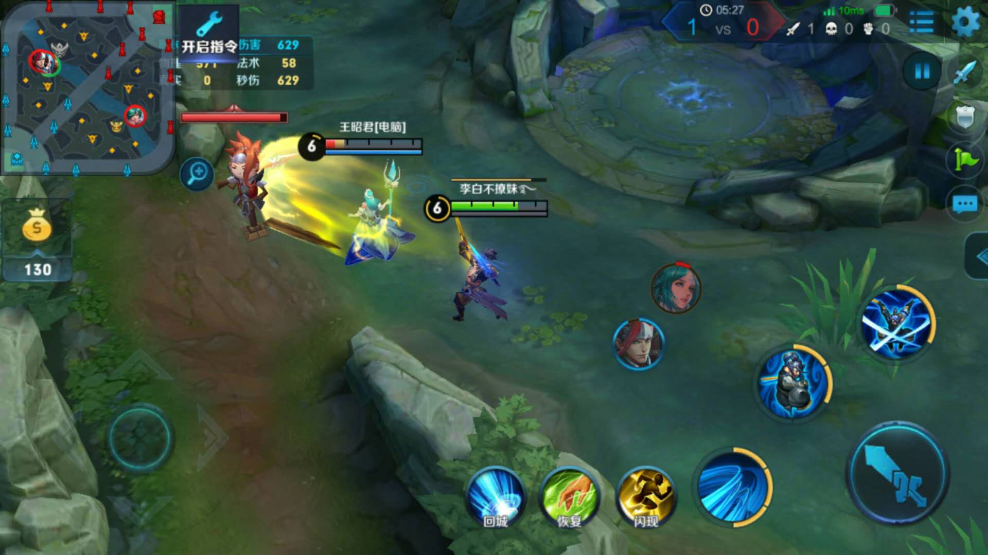 ⑥宫本大招是敌方脆皮的噩梦,为了避免大招大错人的尴尬,建议使用头像锁定模式,将大招拖到目标头像上精准释放