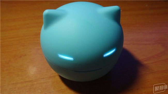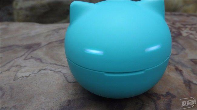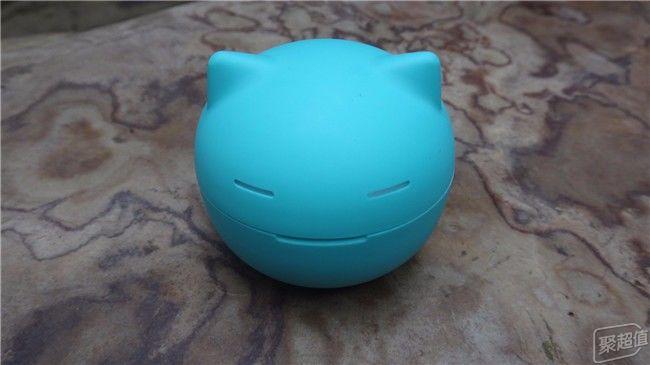 充电舱的外形是一个看上去很萌的猫头,尖尖的耳朵、咪成一条缝的眼睛还会在电充满后发光,为了打开盒子的方便,只有把猫嘴设计成一条豁口了,产品设计巧妙的利用了猫头圆的外形,下半部较重,做成了“不倒翁”。既是耳机的充电舱和收纳盒,又是一个摆件和玩具。