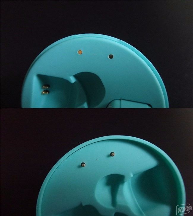 取出耳机在充电舱下面一半的耳机凹槽里有两个弹性触头,是为耳机充电的。在放置耳机为耳机充电时一定要注意耳机的充电金属触点一定要和凹槽的触头接触好,千万别装反了。