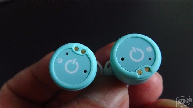 耳机的操作面上有充电触点、多功能操作键、麦克风收音孔、指示灯和耳机左右标识。