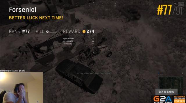 论被水友*击狙**,最惨的就是forsen,一个穿着白色T恤的美国主播,有段时间每天的WTF集锦都有他。最可怕的一次,整个素质广场上差不多一半多的人都在追他,进到游戏后有差不多二三十个人和他跳同一个地方。