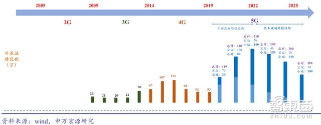 通信网络设备作为5G投资的核心环节,投资周期较长,预计 5G 建设前 4 年期间均会有较大规模的投资,2021 年随着宏站和小站双双放量提升预计会达到峰值。