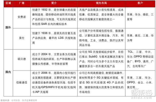 国内外主要移动终端天线厂商