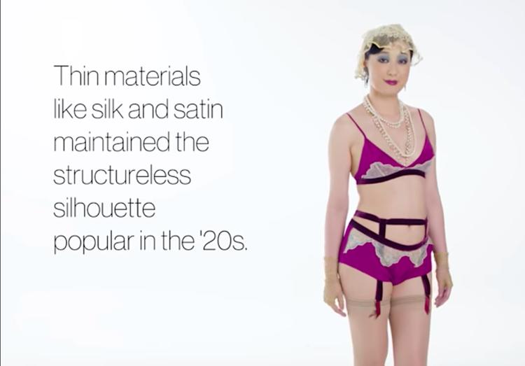 中世纪开始直到 20 世纪初,束腰胸衣长期把女性束缚得紧紧的。这种内衣会把胸部高高托起;鲸须和其他骨头加在腰部,拉住束带就能把腰腹缩小;一些还有撑裙摆的架子——为了让女性臀部看起来更丰满。从现在的眼光来看,这是为了迎合男性丰胸细腰肥臀的审美。
