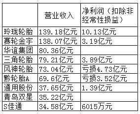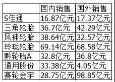 (注:青岛双星和华谊集团还有其他业务,此表只统计轮胎业务的营业收入;S佳通仅包括福建佳通轮胎有限公司业绩)