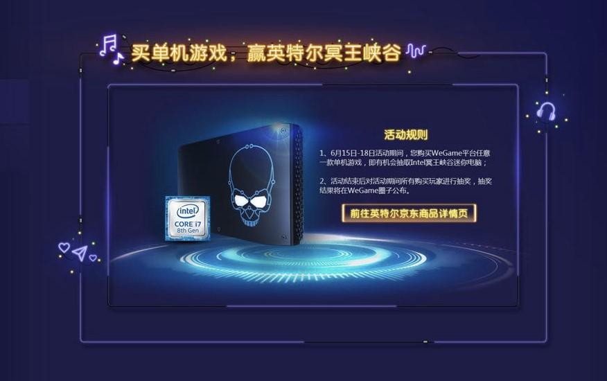 有了好游戏,你是否还缺少一台好电脑?为了回馈玩家对WeGame长久以来的支持,只要在6月15日-6月18日大促期间于WeGame平台上购买任意一款单机游戏,就有机会抽取英特尔冥王峡谷电脑一台!