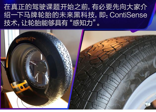 通俗地说,这套带有ContiSense技术的轮胎可监控胎压和胎温,包括轮胎的花纹深浅,提醒车主更换新胎,并且可在轮胎扎钉之后第一时间迅速向车内提醒。重点是整套轮胎可自我调整扁平比,使得随时自适应各种路面情况,做到一胎多种功能角色。下面来聊聊今天各个项目的驾驶环节。