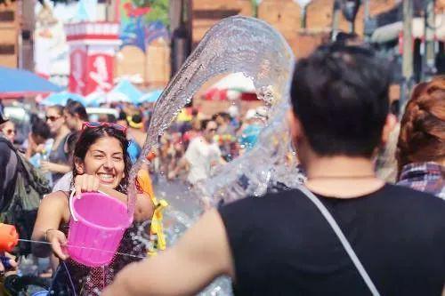 游客和当地人一起加入泼水狂欢的行列,最夸张的是当地的消防车也会加入“泼水”活动,用水枪向人群洒,场面可谓沸腾。除此之外,还会有温柔的泡泡攻击。