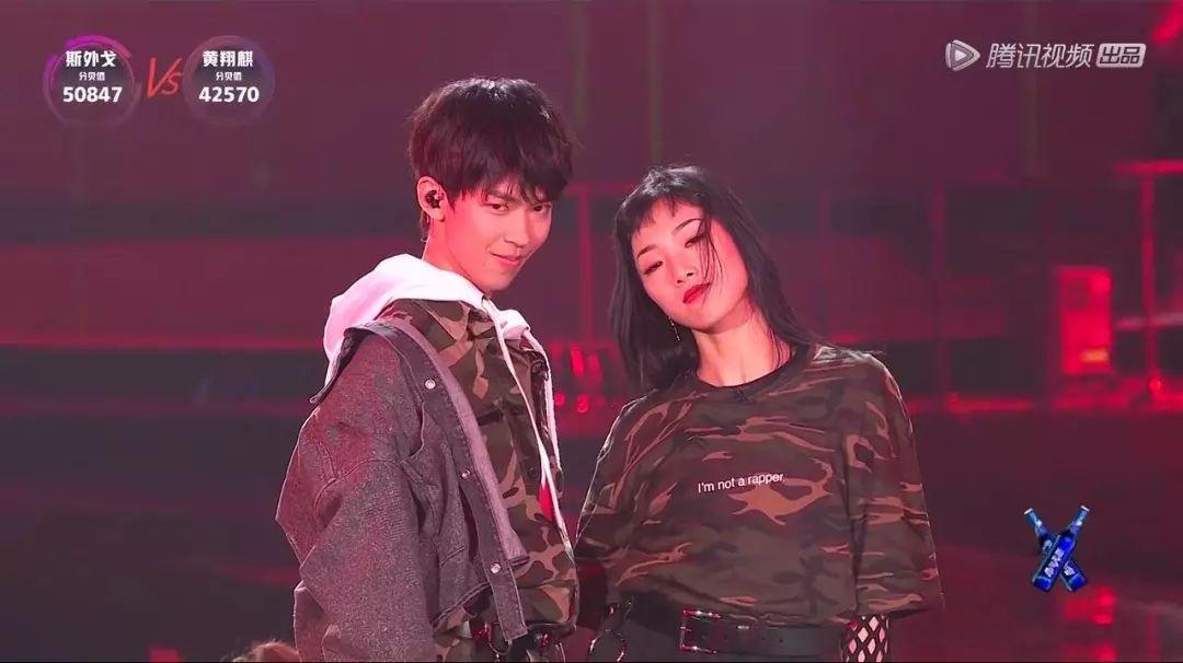 斯外戈和yamy两个唱跳歌手,舞台效果简直炸翻,还特地为了舞台搭了一身迷彩情侣装,和这首歌这个舞台都合二为一了。