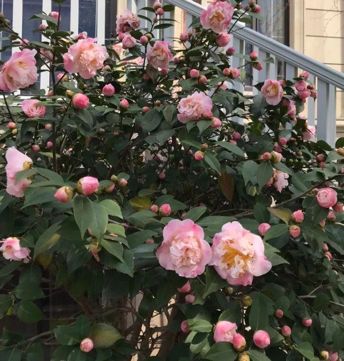 茶花品种极多,是传统的观赏花卉,“十大名花”中排名第八,亦是世界名贵花木之一。【觅翠园】茶花由日本进口而来,更显娇媚。