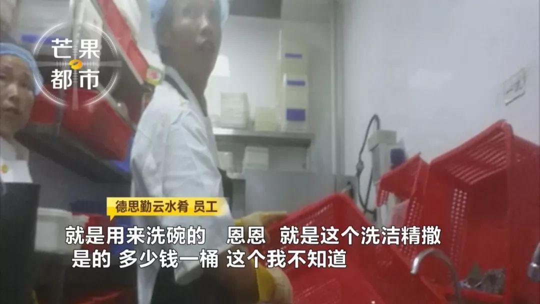 最终,这批洗洁精直接放入了云水肴餐厅的洗碗间内,工人打开其中一桶开始洗碗。