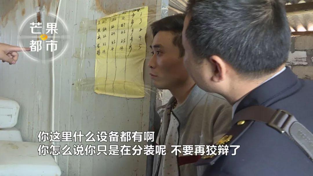 面对执法人员,洗涤剂生产点的老板改口称,他从不生产洗洁精,只是进购来成品后,再进行二次分装销售。